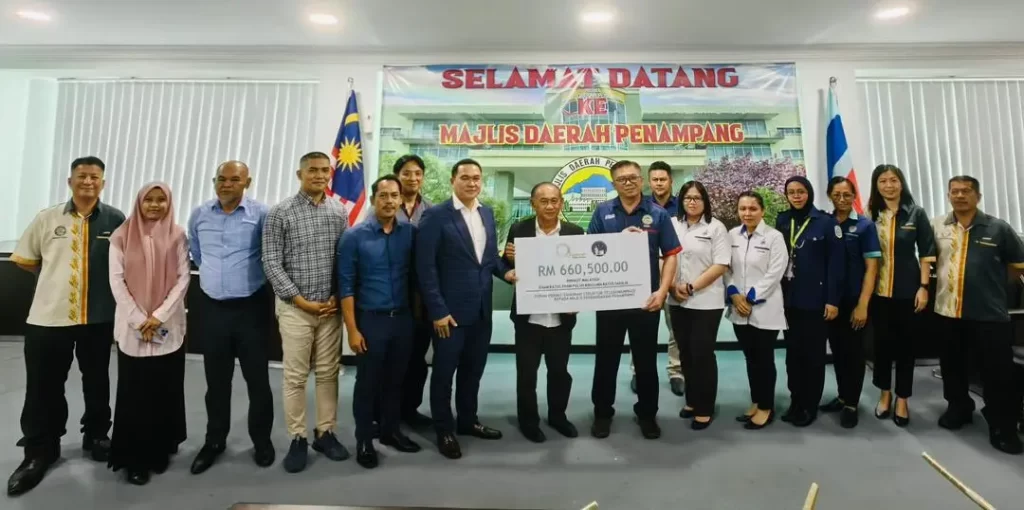 Penyerahan cek replika ini berlangsung di Bilik Mesyuarat Majlis Perbandaran Penampang pada 30 Julai lalu.